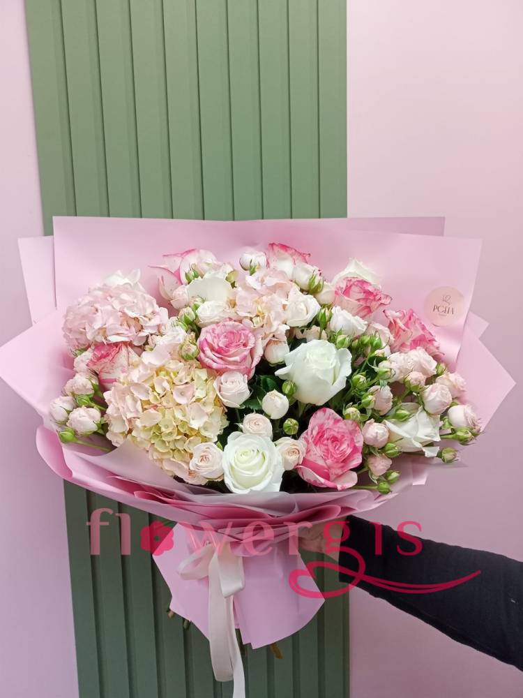 Живым теплом, свежестью и красотой порадуют милые цветы из композиции «Дамский каприз». Великолепное сочетание белых и розовых бутонов роз, гвоздик и нежных эустом в огромного размера букете, станет приятным, неожиданным сюрпризом. Всю трепетность отношений к дорогому для вас человеку передадут утонченные и благородные цветы в продуманном дизайнерском оформлении.